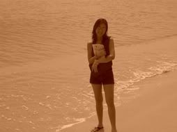 After a little rest, at about 11am, we went to the beach center to check out on the pricing of the sea sports... But it seem quite expensive to us... But he was keen on getting me to try on the Jetski... I had never try any of these sea sports before... But due to the pricing, we drop the idea of it... Actually I wana try on the Banana Boat but once again the minimum required amount of people is 4 again... Haiz... After checking on the price, we went to stroll along the beach... Played around with our camera mode and that's why the photos look like evening time when actually its about 11am in the late morning... Picked some sea shells... Den we went to wash up our feets... Went to the lobby to meet up the couple for our fruit farm trip... They always reached very early and made us seem to be late liddat... Hai...