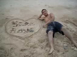 We picked alot of beautiful stones... Den I came up with the idea of using the stones to form our names... Before I could finish the wordings, he saw it and we did it together... We had to find alot of stones before our names can be done... Very romantic right, gers? Lol... It was near evening time at that moment... Not much people were at the beach... I really feel so romantic at that moment with him...